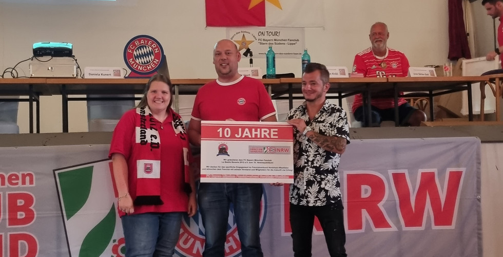 Mit corona-bedingter Verspätung, dafür aber umso herzlicher dankte der FC Bayern München Fanclubverbund NRW auf der diesjährigen Jahreshauptversammlung sieben Fanclubs zu ihrem Jubiläum aus den Jahren 2020 bis 2022.